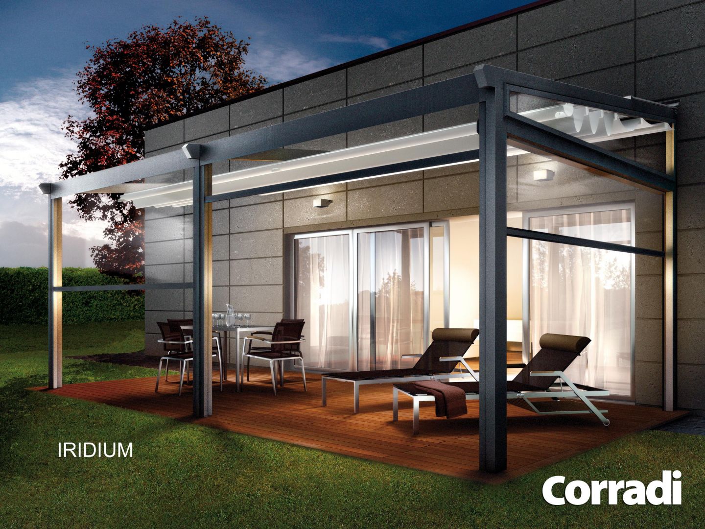 Struttura in alluminio 6X12 CM, telo eclissi. E' in questo momento la versione piu' gettonata per qualita' E DESIGN basic di questo tipo di strutture con tenuta a sole vento e pioggia.