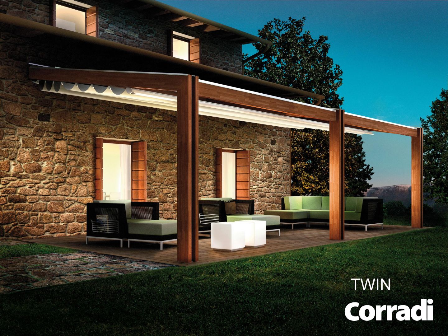In legno, richiama le forme curate della millenium in alluminio con il calore del legno,oltre ad i colori standard é disponibile con colorazione ral a scelta.