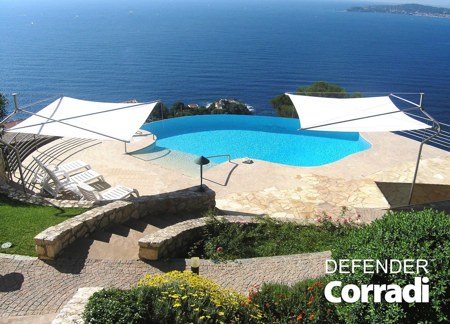 Ombreggianti di 11 e 14 mqcon piedistallo o supporto a parete ruotabili da 90 a 360 °,manuali o automatici con anemometro.