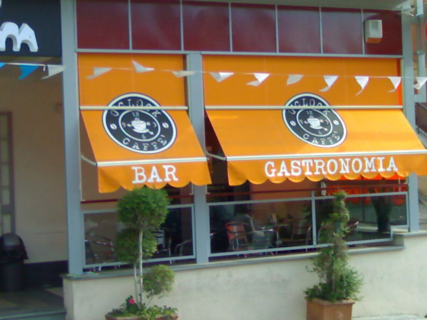 Tende a caduta con funzionamento a manovella, guidata ai lati e personalizzata con scritte e loghi.