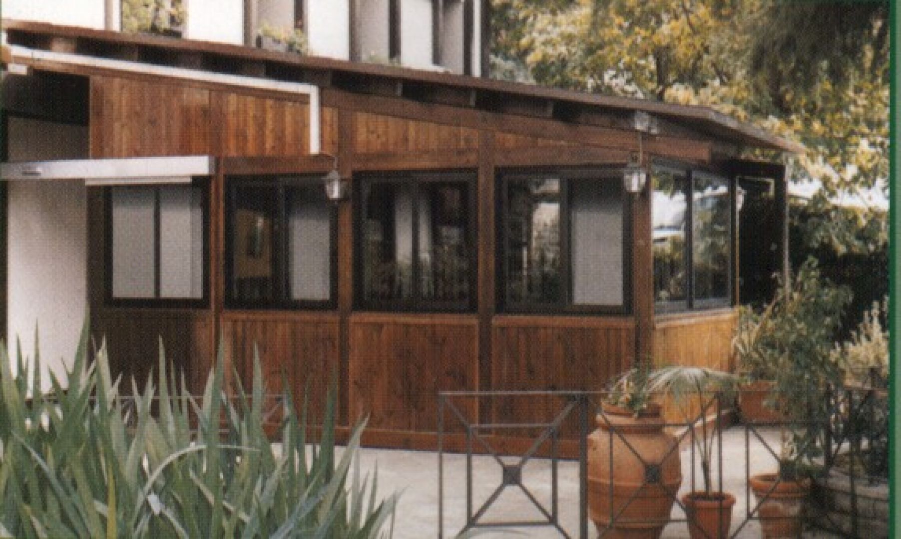Pergola addossata con chiusura a vetri