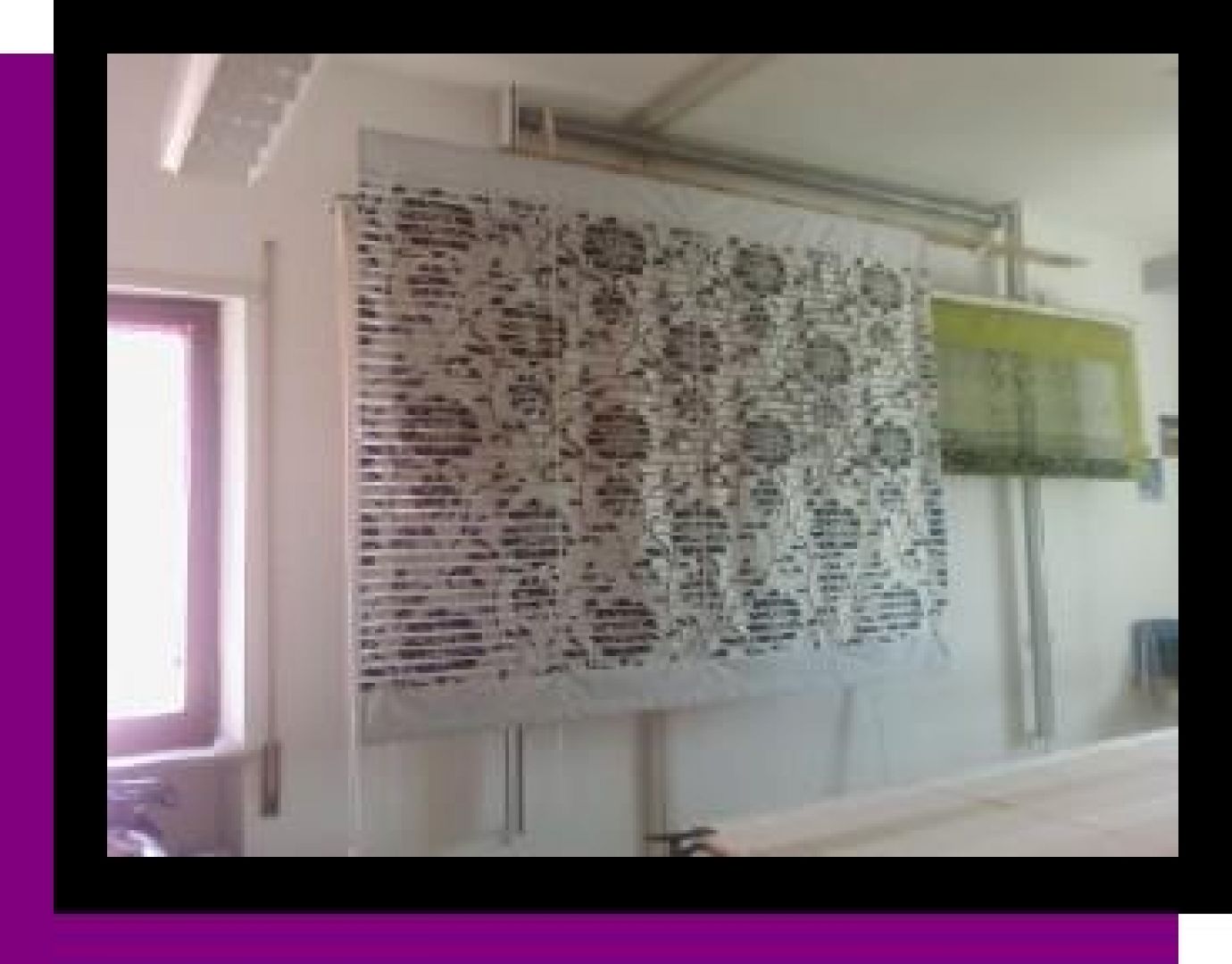 TRAMA SOTTILE, VEDO NON VEDO CHE SI INTRECCIA CON UN DAMASCO STILIZZATO SU FONDO ARGENTO...UN ARAZZO PIEGHEVOLE
