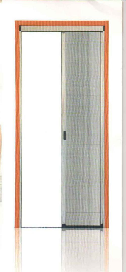 Zanzariera con rete tesa,azionamento laterale,guida 5 mm,si sgancia facilmente per permettere la pulizia o la rimozione invernale.