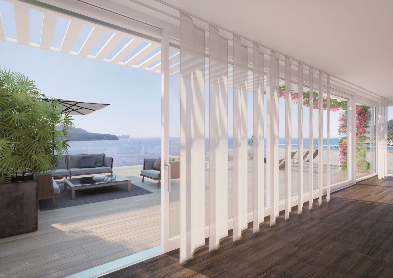 il pannello scorre sinuoso tra due binari come una porta scorrevole ad onda
