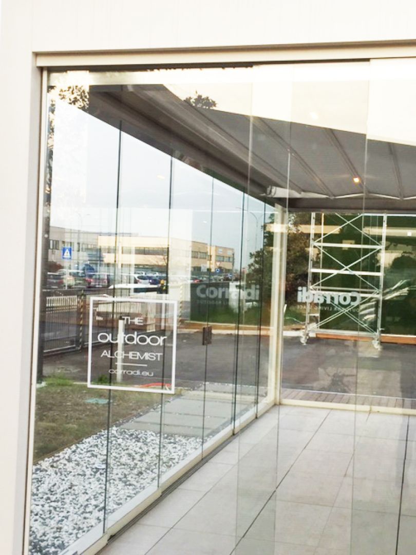 senza profili in alluminio a vista interno ed esterno si fondono ,e lo spazio risulta protetto da uno schermo invisibile, che esalta la luce.