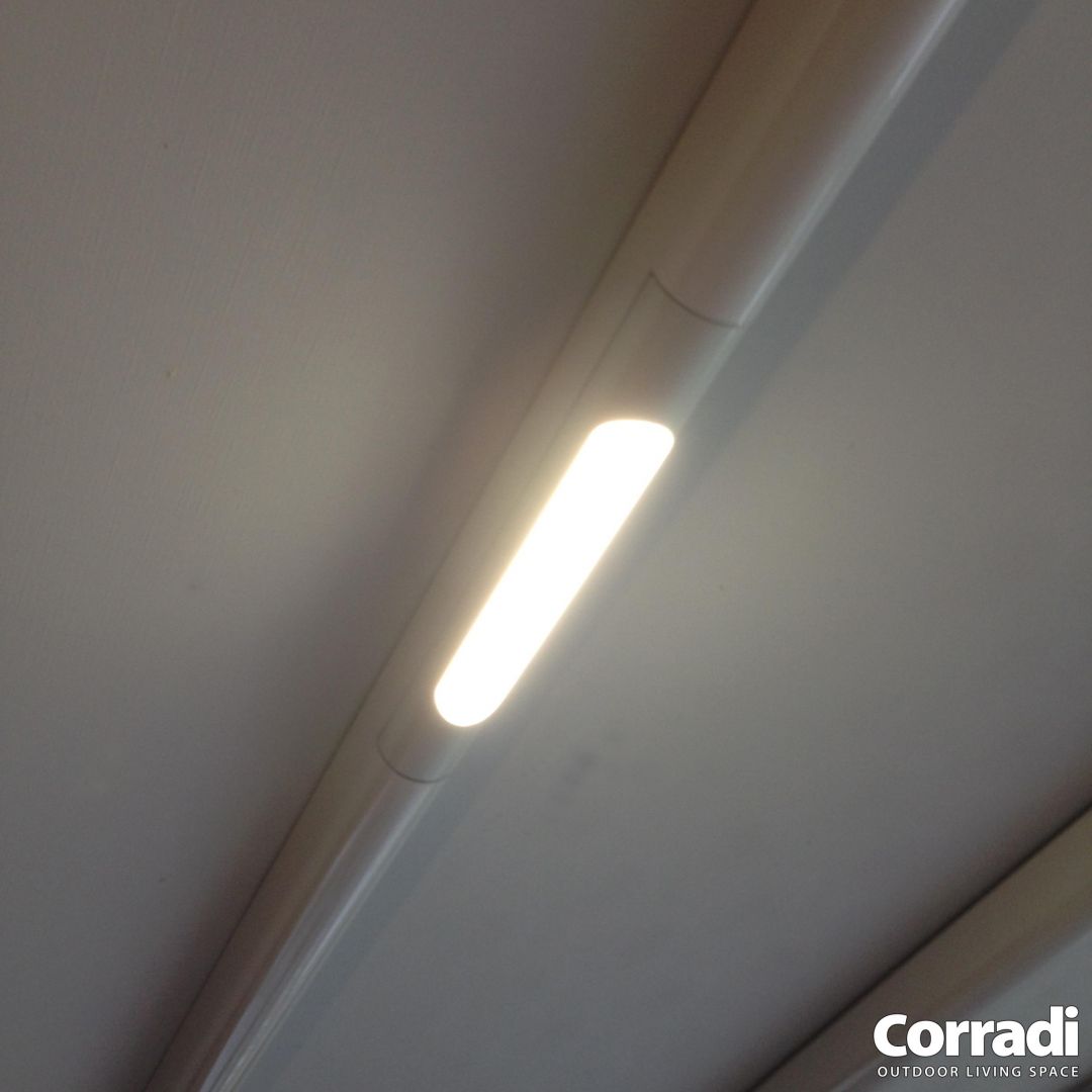 LA LUCE a led può essere inserita nei tubi frangitratta ed essere regolata nell'intensità dallo stesso telecomando della tenda.
