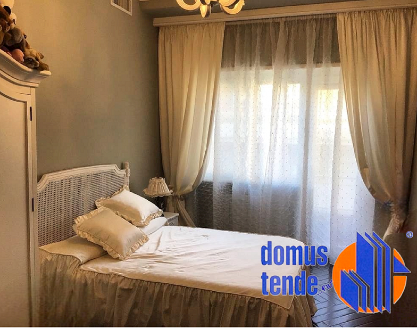 UNA LEGGERA TENDA BIANCA IN LINO DONA CANDORE A QUESTA CAMERA DA LETTO, ABBINATA AD UNA TENDA OSCURANTE RACCOLTA AI LATI DELLA FINESTRA CON AMBRASSE REALIZZATE A MANO. CUSCINI, COPRILETTO E PARALUME REALIZZATI IN COORDINATO.