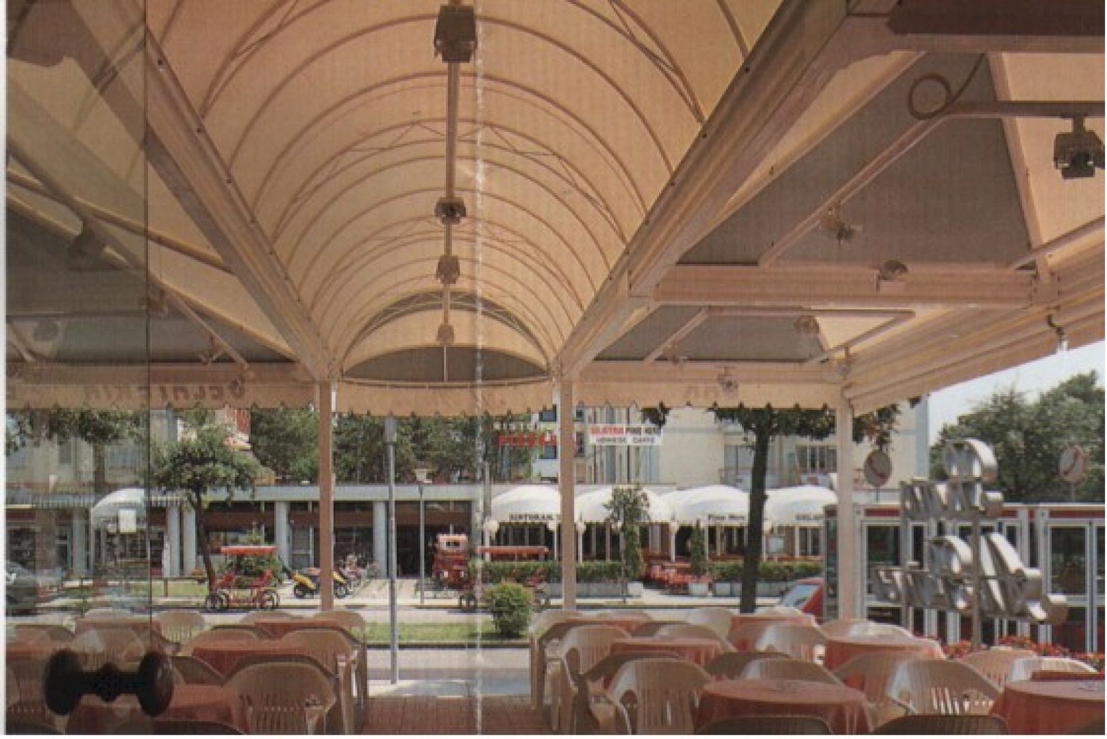 Tunnel centinati fissi accoppiati a gazebo, atti a formare una struttura a copertura di spazi aperti.