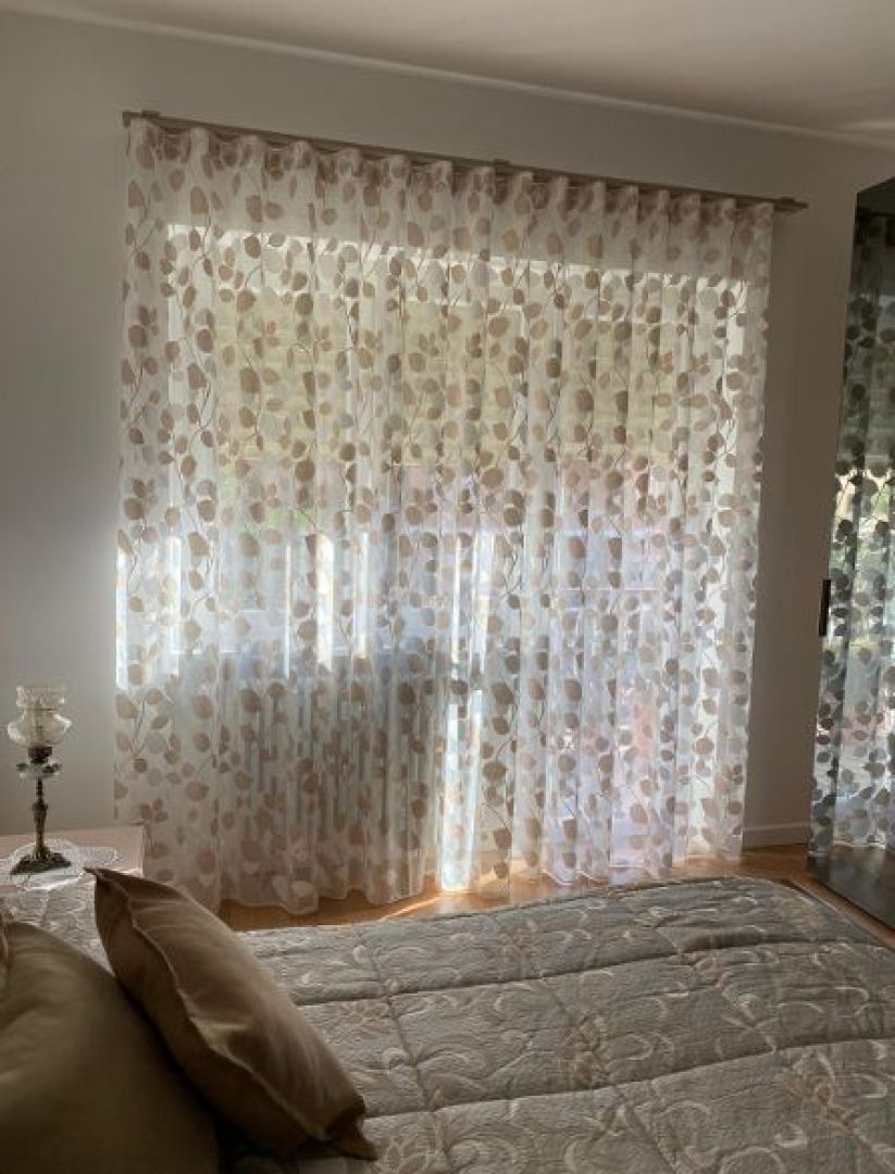 TENDA MORBIDA CON TESSUTO DEVORE' DAI TONI CHIARI ARREDA E FILTRA LUCE IN CAMERA DA LETTO