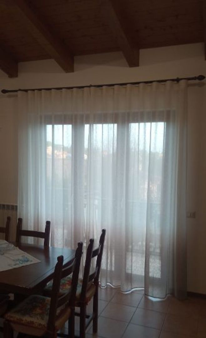 TENDA AD ONDE CONTINUE CON TESSUTO IN LINO SFUMATO E BASTONE IN FERRO DIAMETRO 30 COLOR RAME