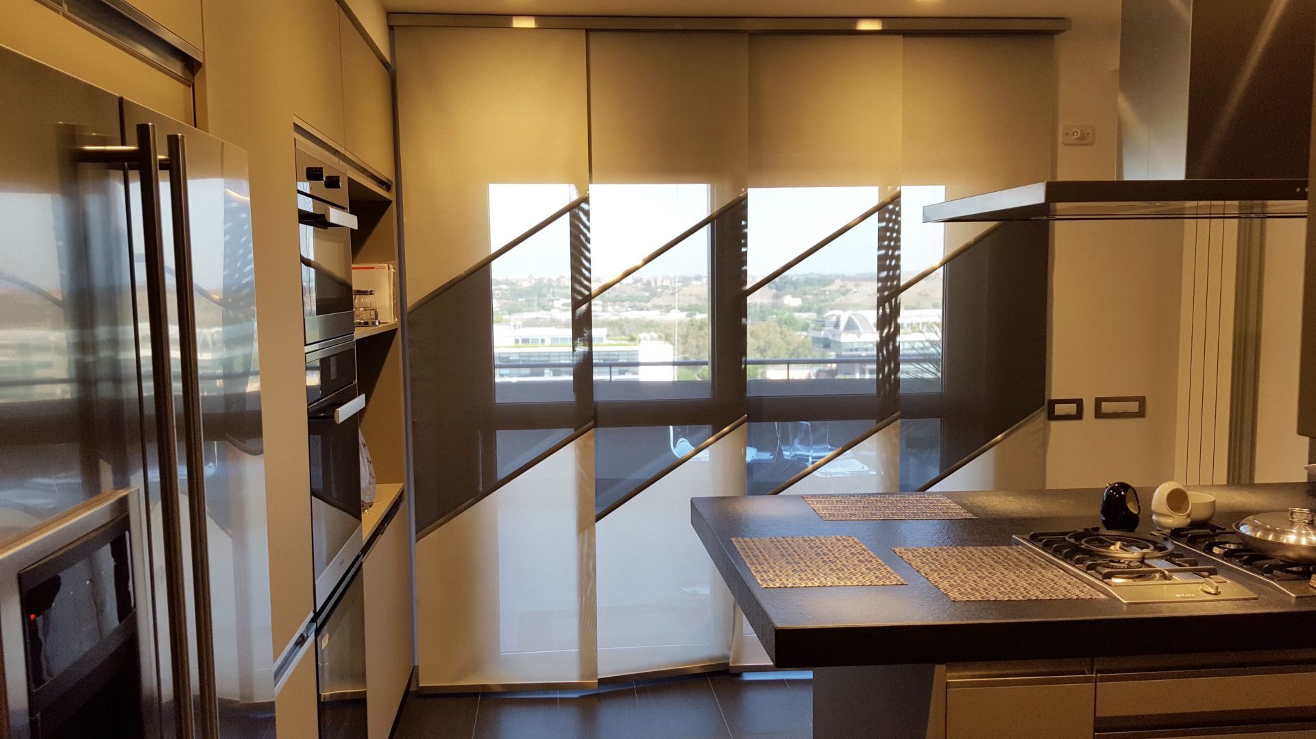 TESSUTO FILTRANTE IN PVC, NON ASSORBE ODORI NE VAPORE, LAVABILE CON UNA PEZZETTA UMIDA, CONSENTE LA PRIVACY SENZA OSTACOLARE LA VISTA DELL' ESTERNO.