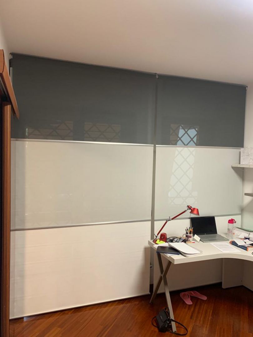 TENDE A RULLO CON TRE TESSUTI DIVERSI IN POLYSCREEN, DIVISI DA STECCATURE IN ALLUMINIO.