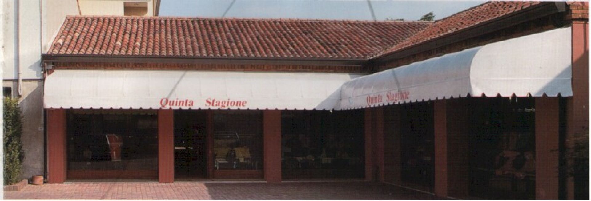 Cappottina fissa con tessuto in pvc personalizzata con scritta e corredata di mantovana.
