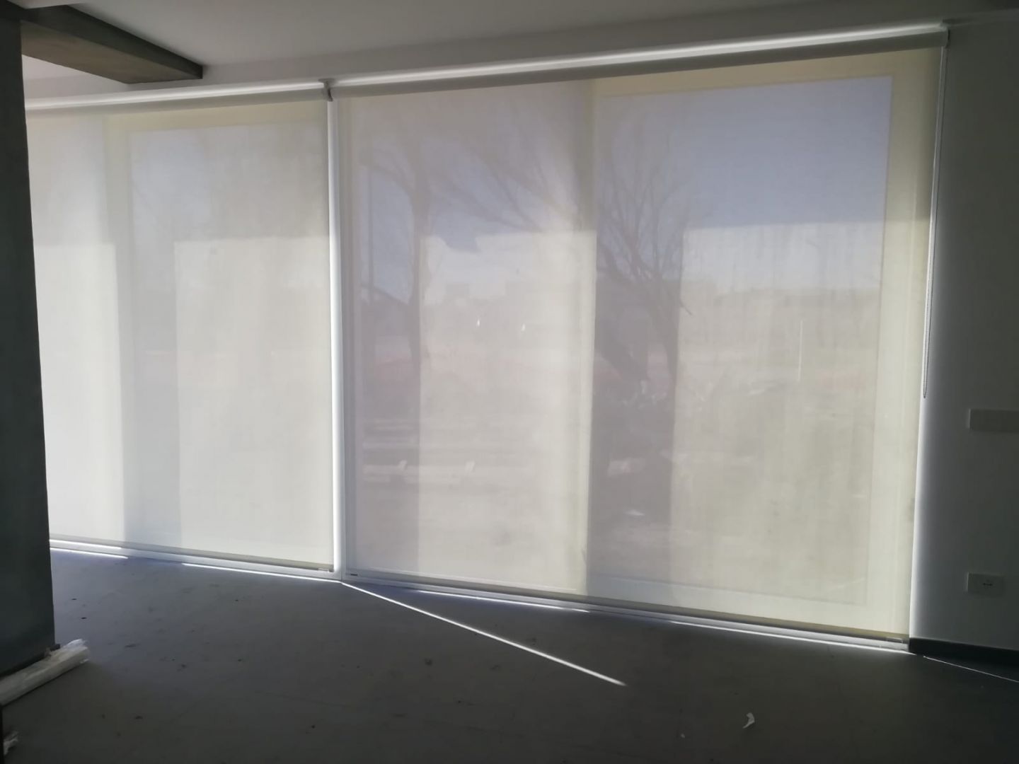 TENDE A RULLO BIANCHE IN POLYSCREEN A COPERTURA DI UNA GRANDE VETRATA