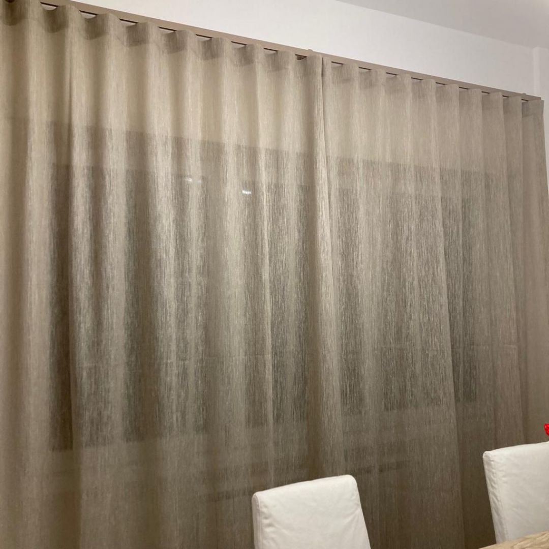Tenda ad onde in misto lino con binario decorativo color tortora
